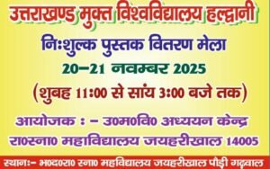 भक्त दर्शन राजकीय स्नातकोत्तर महाविद्यालय में स्थित उत्तराखंड मुक्त विश्वविद्यालय स्टडी सेंटर द्वारा 20‑21 नवंबर 2025 को निशुल्क पुस्तक मेले का भव्य आयोजन